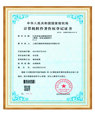 匯檢設備運維服務軟件V1.0著作權登記證書