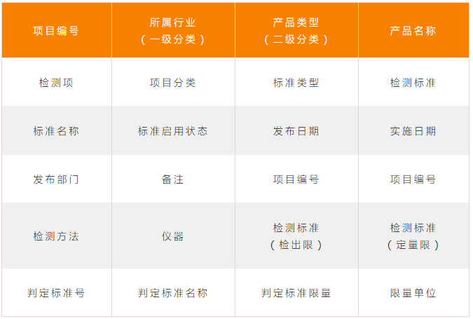 判定標準號 判定標準名稱 判定標準限量 限量單位
